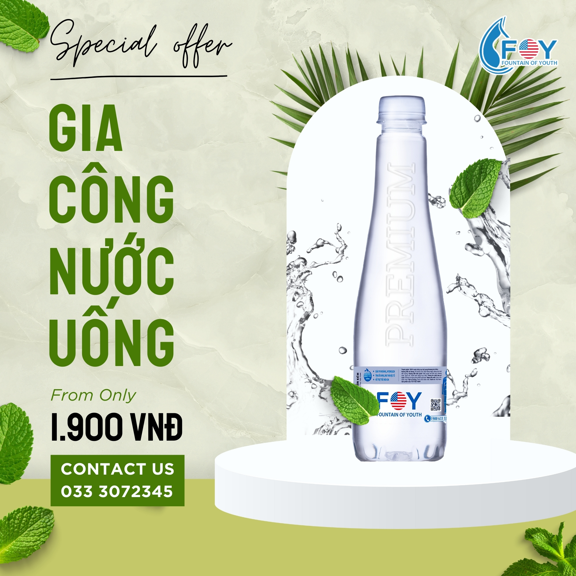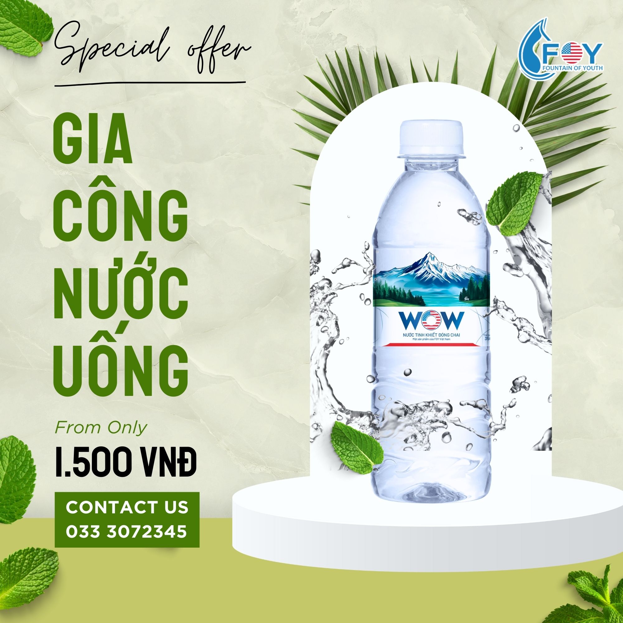 Quý doanh nghiệp, chuỗi cửa hàng tiện lợi có nhu cầu gia công nước uống đóng chai nhãn riêng, hãy liên hệ ngay với FOY Việt Nam để nhận báo giá và tư vấn chi tiết!